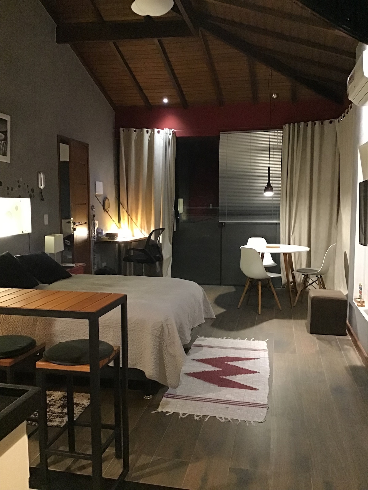 Studio apartment, banheiro novinho, cozinha novinha, dispõe de geladeira, microondas, cooktop, utensílios de cozinha, cafeteira, sanduicheira, conexão wi-fi, smartv com Netflix liberada, cama de casal(padrão colchões botafogo) e colchão solteiro extra("inflável" no caso de 3 hóspedes). Situado a 700m da orla da Praia Grande, e 250m do pontal do Atalaia, para desfrutar do mais famoso pôr do sol da região dos lagos, e ter acesso a uma das mais belas praias do mundo, As Prainhas!