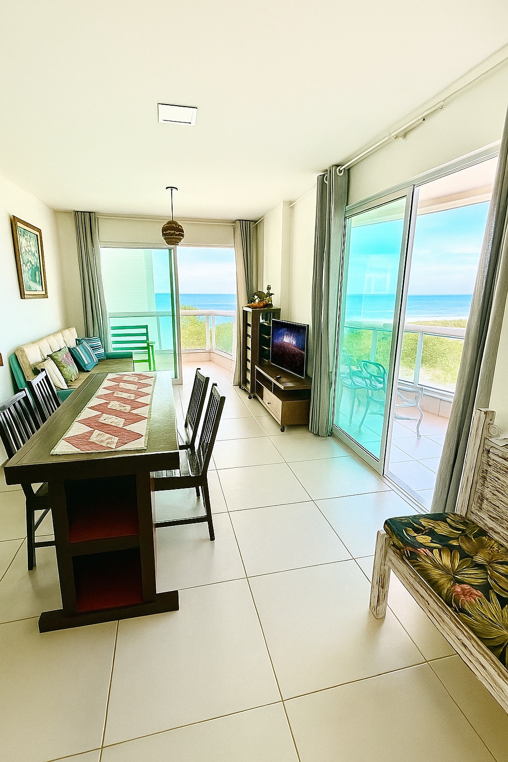 Experience unbelievable panoramic ocean views from this 2 bedroom flat in paradise. Located inside an ecological reserve, you will enjoy relaxing vacation in a beautifully decorated property with everything you need surrounded by nature and the sounds of the ocean. Only 18 minutes from downtown Buzios and 12 minutes from Portal da Barra.