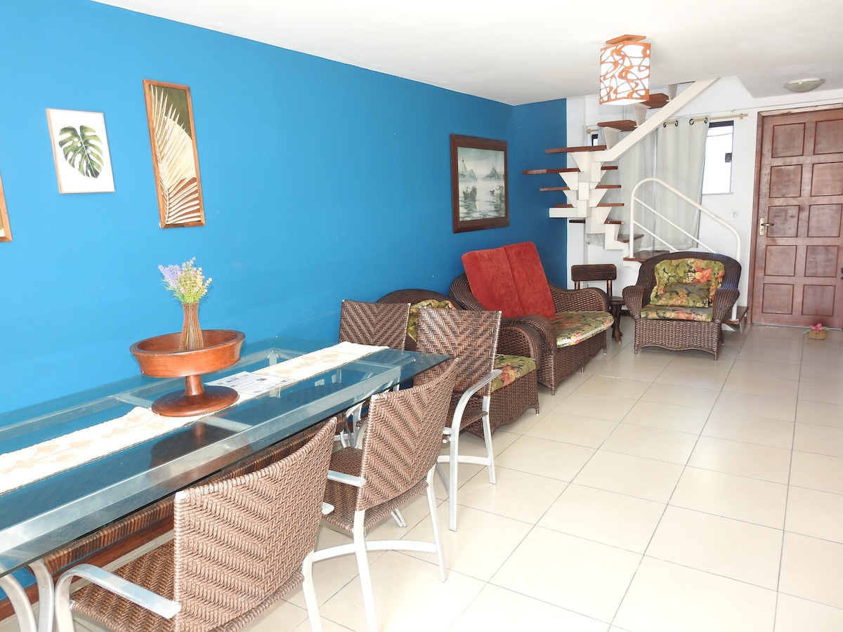 Our house is just a few steps from the most beautiful beach in Arraial do Cabo. Spacious and inside a gated community, it comfortably hosts up to 10 guests. It has 3 bedrooms, a full kitchen, a barbecue area with views of two stunning beaches, and the relaxing sound of the sea at night. We provide bed linens, bath towels, and all utensils for cooking and unforgettable family meals. Feel at home—in paradise.