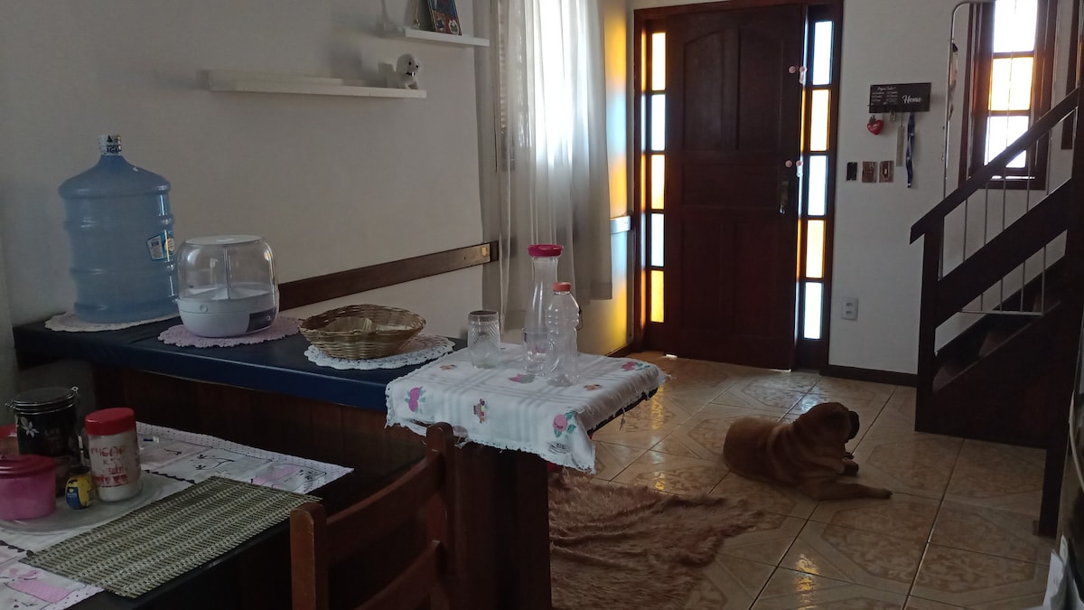 Relaxe nesse recanto delicioso no tranquilo bairro Bosque, um espaço de veraneio familiar, não um hotel. O que tem: - Ar condicionado - Wi-Fi de 300 mb - Smart TV 32" - Uma cama de casal e uma caminha de solteiro embaixo. - Roupas de cama e banho - Cozinha compacta (cooktop, geladeira, sanduicheira) - Estacionamento no quintal Possui jardim gramado onde você pode pegar sol, ouvir música e olhar as estrelas. Sinta-se em casa quando estiver aqui!