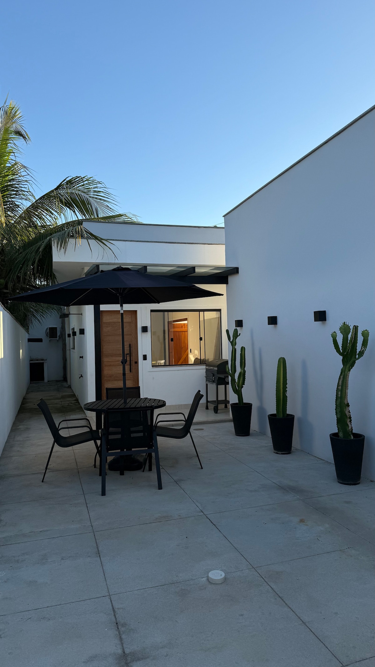 Curta uma experiência elegante nesta casa moderna muito bem localizada, a 600 metros da praia de Geribá Casa de primeira locação, confortável, moderna, em estilo contemporâneo, totalmente privativa e com vaga de garagem. A casa oferece uma área externa com churrasqueira americana, jogo de mesa e cadeira com ombrelone e chuveiro A casa pode receber até 4 pessoas em camas. Se quiserem trazer crianças , podemos disponibilizar colchonete, além do sofá extensível. Valor sob consulta