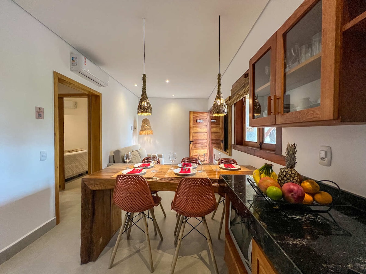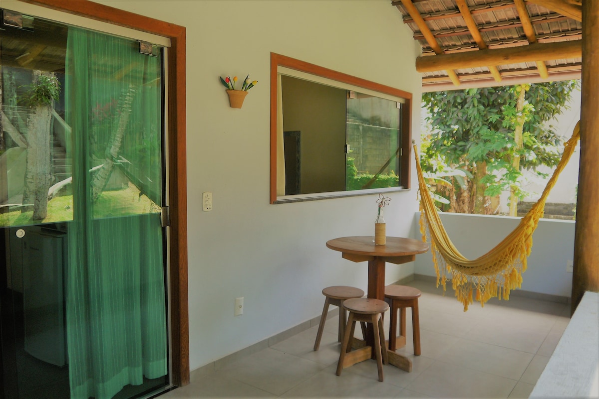 Aconchegante apartamento completo para 2/3 hospedes, em lindo e tranquilo condomínio fechado, muito bem localizado no centro de Arraial d'Ajuda bem próximo a vários tipos de comércios e a charmosa rua do Mucugê (5 min a pe), e possível deixar o carro no estacionamento e sair andando tanto durante o dia que a noite!!! O condomínio e construído sobre uma área em desnível, por tanto tem uma escadaria ao longo do caminho que leva até o apartamento (não recomendado para idosos). Insta @VilaZion
