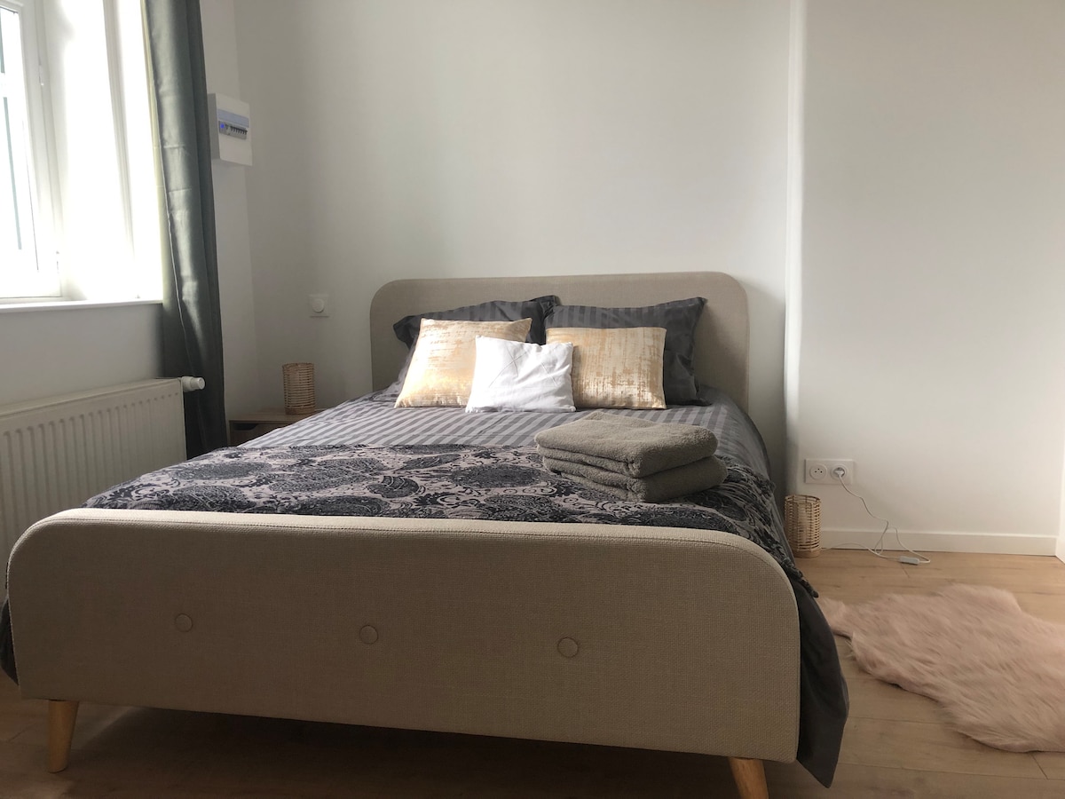 Relax in this quiet and elegant apartment on the second floor (walk-up) of a luxury residence in the heart of Arras. The apartment has everything you need for your stay and features a double bed, a living room with a TV and a sofa bed opening onto a fully equipped kitchen, a shower room with a washing machine, and a free parking space. The property is quiet despite its central location.