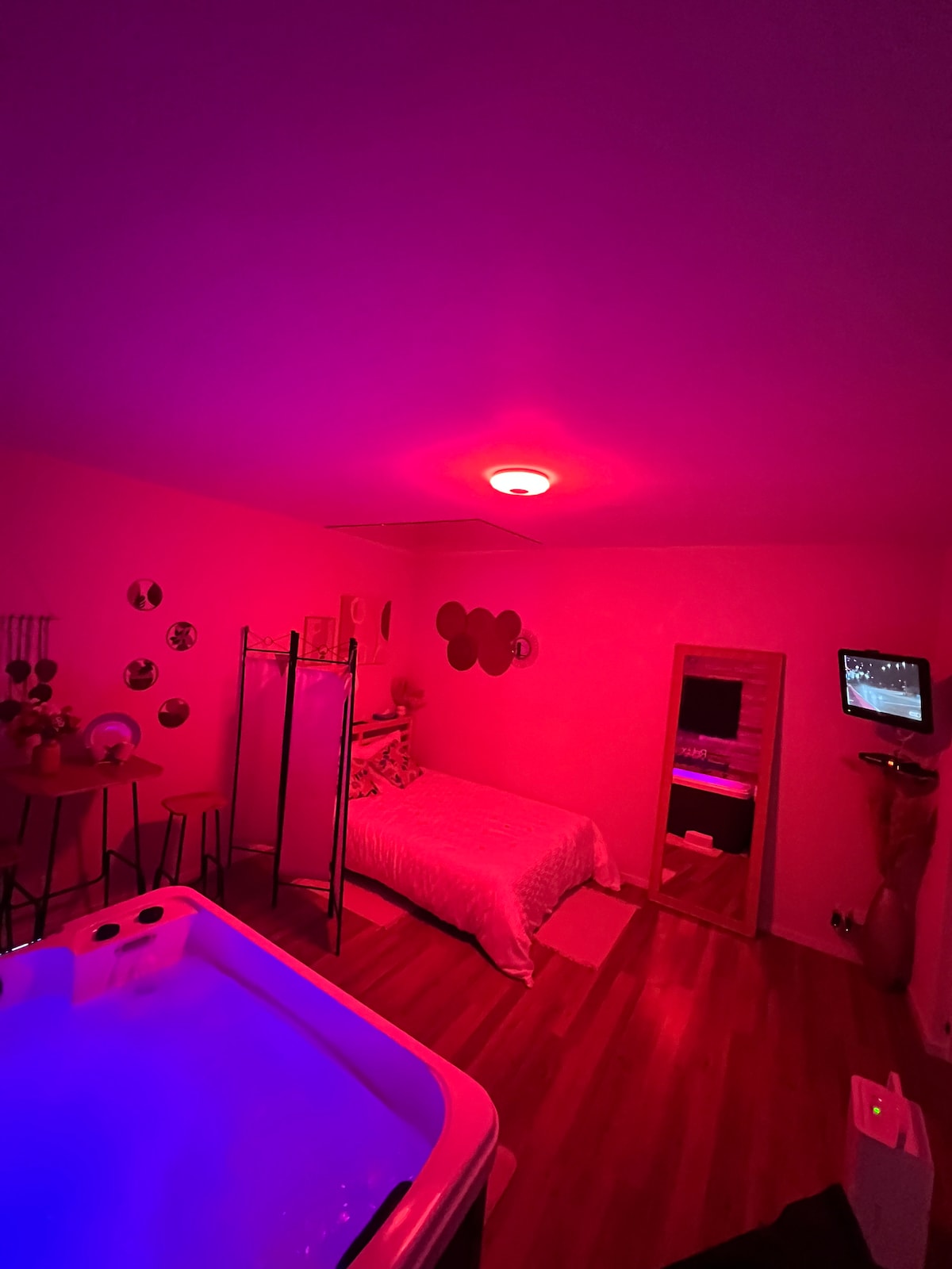 Plongez dans une bulle d’intimité avec notre suite bohème chic et son jacuzzi privatif en accès illimité. Ambiance tamisée, pétales de roses, boissons chaudes… tout est pensé pour une soirée romantique inoubliable. Lit douillet, douche à l’italienne XXL, serviettes moelleuses, peignoirs, parking privé et arrivée autonome : il ne vous reste qu’à profiter, à deux. ✨ Idéal pour un anniversaire, une demande en mariage ou un week-end romantique. Offrez-vous une pause bien-être loin du monde.