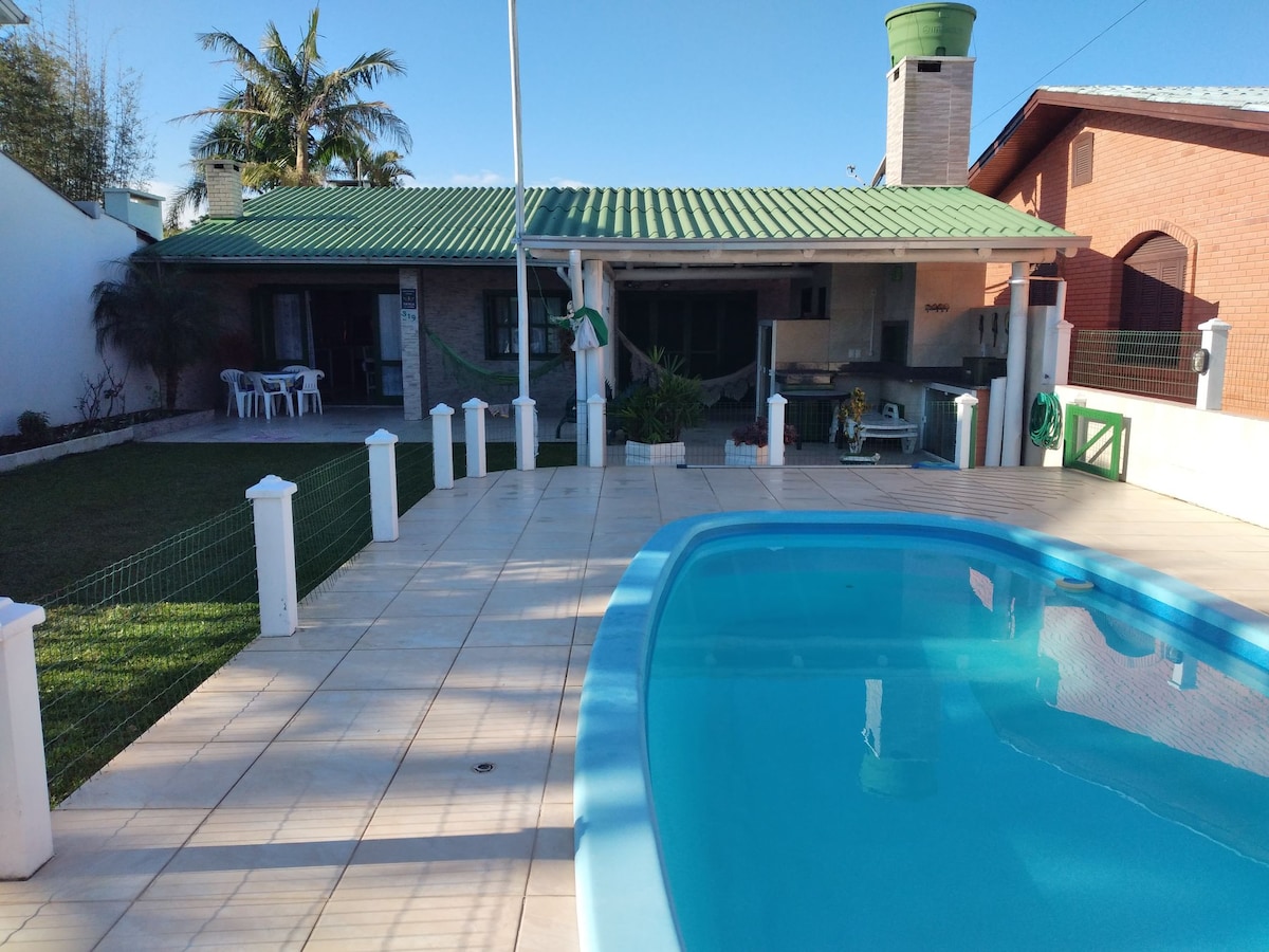Casa de praia dos avós Luiz e Angelina, ampla e muito espaço, frente gramada, ótimo local para relaxar e conversar, cozinha completa, duas geladeiras, fogão 6 bocas com forno muito bom, uma suíte e mais 3 quartos, 3 banheiros, quiosque com churrasqueira grande, mesa e cadeiras para festas e confraternização, garagem, a 500 metros da praia Pérola 6 km do centro de Arroio do Sal, RS e 4km de Curumim!