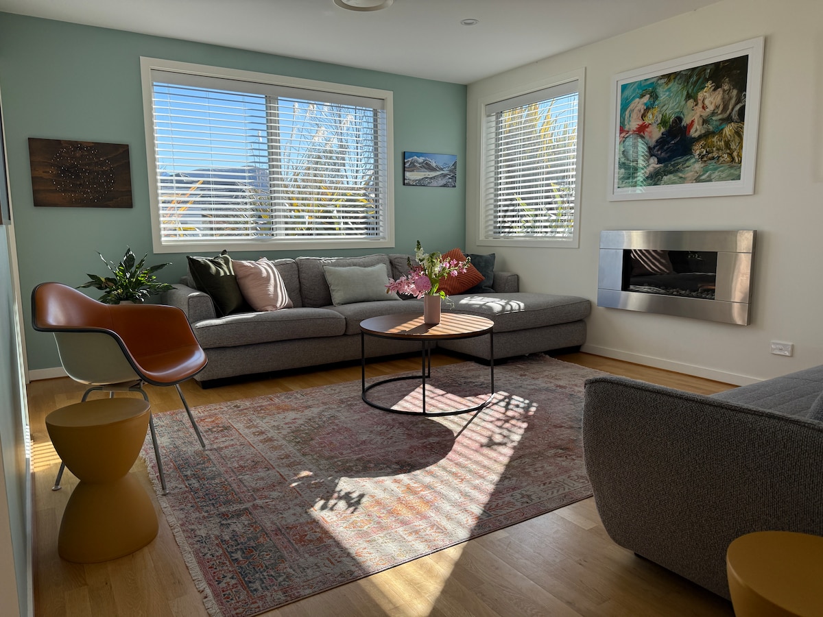 This newly refurbished home, just a short walk into the centre of Queenstown, provides the perfect spot to be close to all the action this vibrant town has to offer. Ruru Retreat has two seperate living areas. The main open plan living and dining space is lake facing with large windows maximising the panoramic views of Lake Wakatipu and the Remarkables Mountain Range. With a log fireplace it provides the ideal ambience to cozy up to in winter after a day spent skiing on the nearby fields.