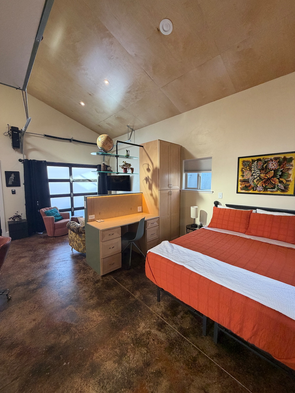 This beautiful loft apartment is located in a handcrafted timber-frame barn. Many artistic touches make this space cozy and unique. Surrounded by oak trees and gorgeous landscape, this setting is a perfect getaway spot. Whether you choose to unwind in the serenity that surrounds our olive farm or venture out to experience all that SLO County has to offer, you'll be in the perfect spot.