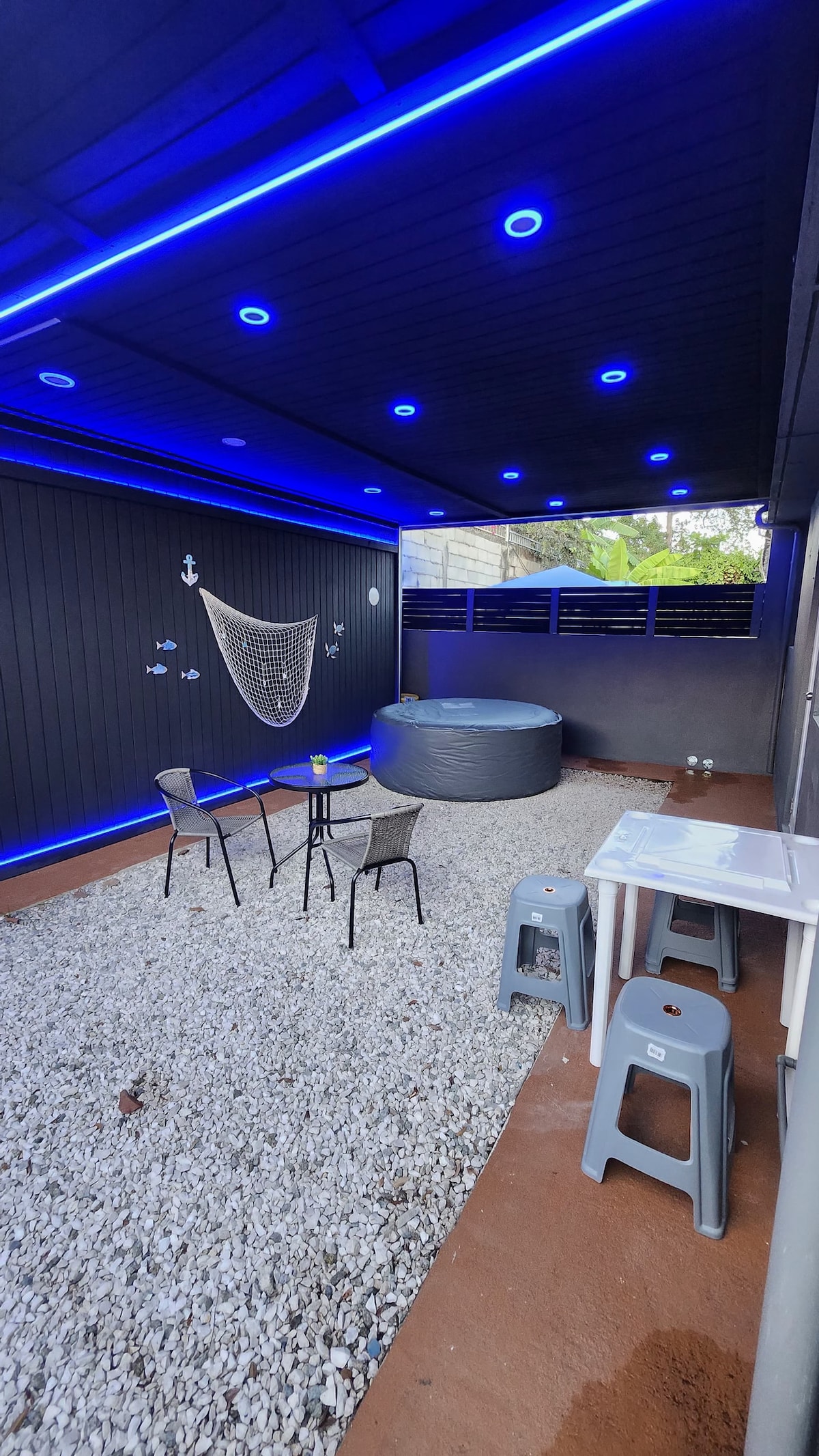 Tropical Beach Escape – Your Private Getaway in Arroyo Stay at Tropical Beach Escape, a fully fenced-in home just a short walk from the beach and minutes from El Malecón de Arroyo. This spacious retreat features 3 bedrooms, 4 beds, 2.5 bathrooms, and AC in every room for your comfort. Enjoy a gym area, backyard, and on-site parking. The back patio is the perfect hangout spot, with smoking allowed only in the designated area. Book now and enjoy the best of Puerto Rico!