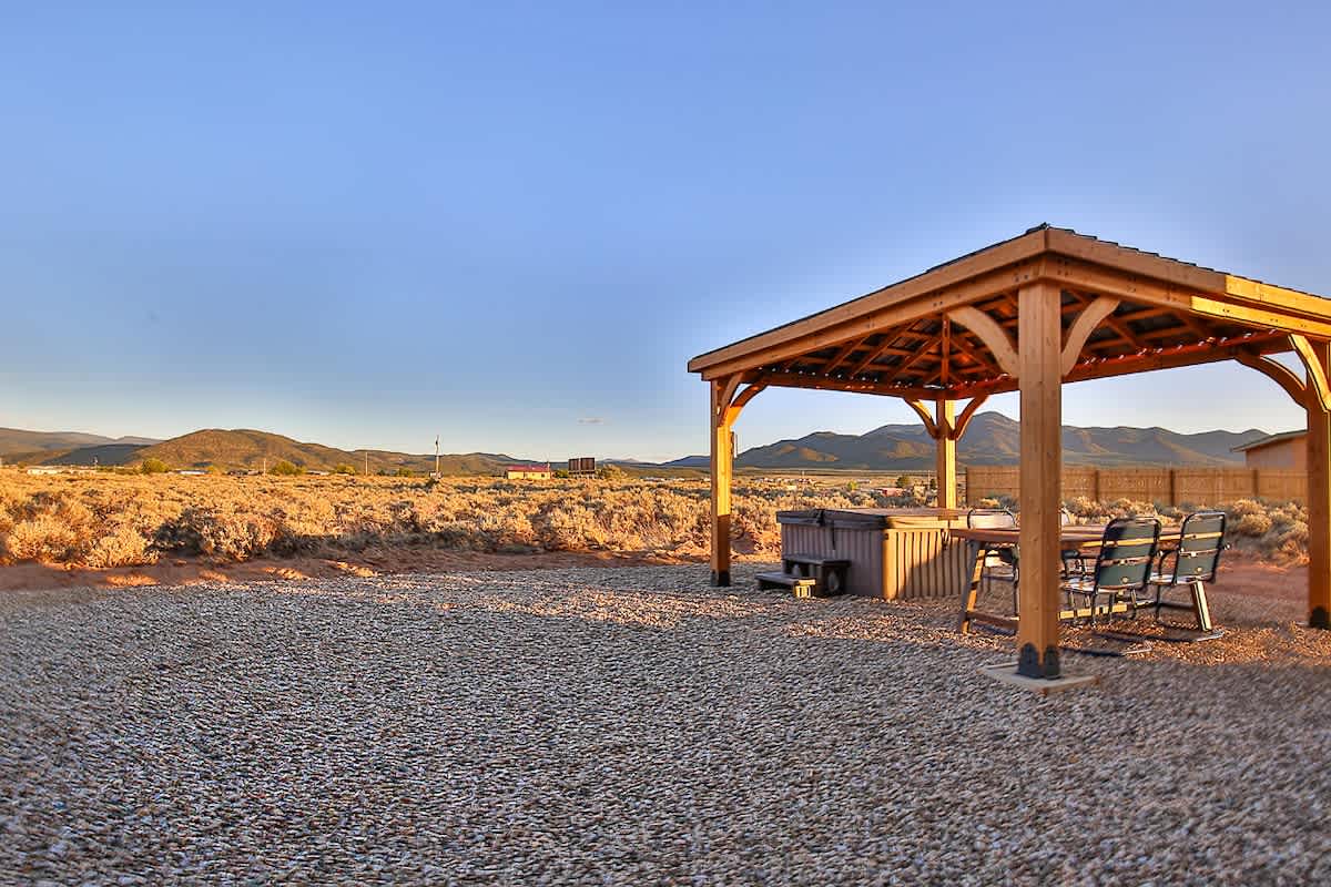 Relax at this peaceful newly constructed modern retreat that's close to town. Perfect for small families or two couples. Enjoy the nearly 360 views, epic sunsets, outdoor dining, and a brand new hot tub. Only 4 miles from Taos. You get the best of both worlds: that feeling of being away from it all while still only being minutes from amazing dining and art. We are also than 30 miles from Taos Ski Valley and Angel Fire Resort. Make your memories at Casa del Sol.