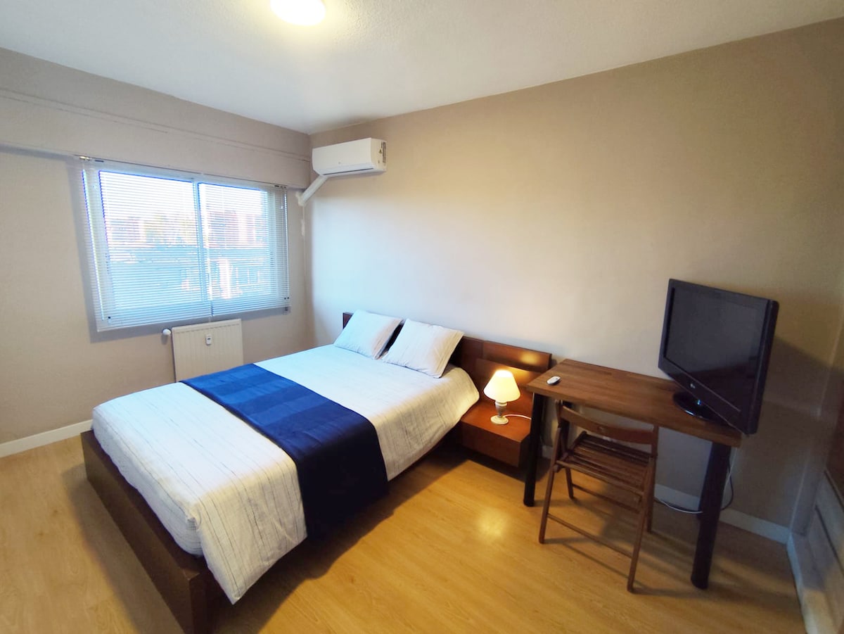 Cozy and cozy loft apartment on the ground floor for one or two people for days, weeks or months. Quiet location, with a large lake just a 5-minute walk away. Natural light, fully equipped kitchen, bathroom and shower, 135x200 cm bed, Smart TV, and air conditioning for heating and cooling. Wi-Fi, electricity, and water included. Well-connected by road and public transport (close to metro) easy parking.