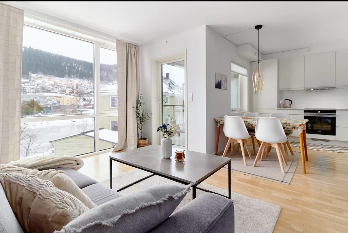 Stay in a modern and centrally located apartment in the Bergenhus district. Close to one of Bergen’s most beautiful city mountains, as well as restaurants, gym, and public transport. Stay in a quiet neighborhood that's still perfectly located for exploring the city. Just 2–5 minutes to public transport and all essential amenities. Perfect if you want to experience Bergen in a authentic and relaxed way. You can take the light rail (Bybanen) directly from the airport or rail station.