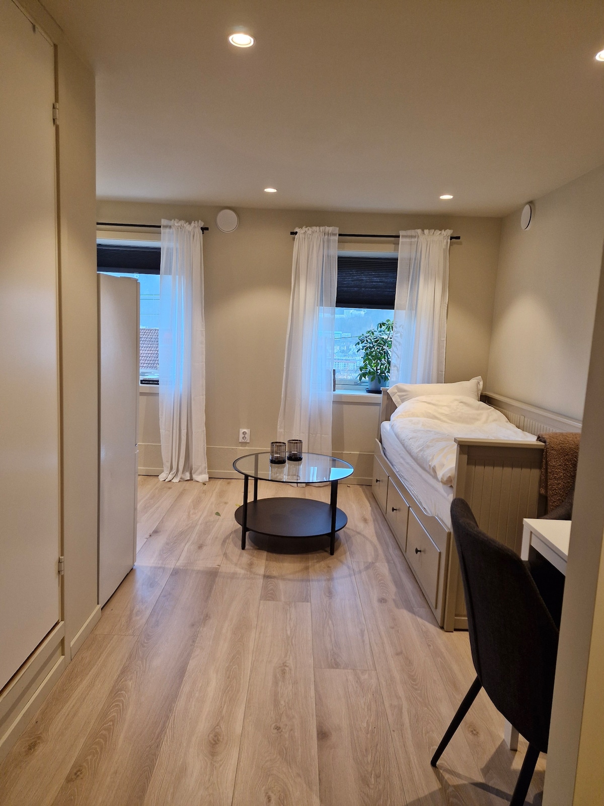 Nice and quiet studio apartment in old villa 15 min from city centre. Easy accessible from trainstation and airport. Central booking for culture and shopping experiences in Bergen, hiking, workouts, workrelated stay, etc. Grocerystore across the street. There is no seperate bedroom, the sofa transforms into a nice doble bed. Heating in floors, in bathroom and living room. Welcome to Bergen!