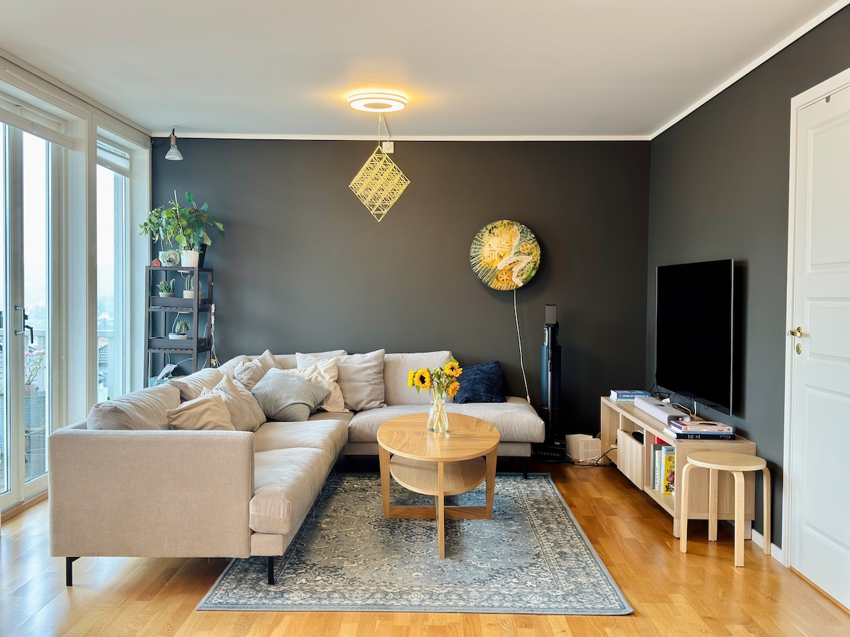 Bright and modern 2-bedroom apartment with a high standard and fine qualities, own free parking right outside the apartment. Here you live in a central location in attractive surroundings with walking distance to "everything" you need in everyday life. With, among other things, immediate proximity to light rail stops, shops and great walking areas/green areas. Well equipped kitchen. There is a washing machine with a dry function.