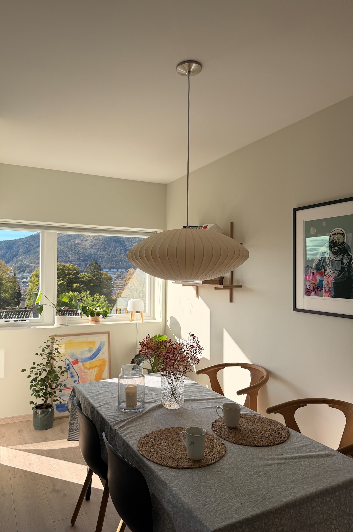 A peacful and safe space to rest after a day in the city or on the mountain ❤️ lots of nature and a cute balcony facing the afternoon sun ☀️ Close to bybane (tram) with short distance to the city center. It’s possible to ride the city bikes, tak electronic scooters or to walk as well. Walking distance to Ulriken ⛰️ (and other beautiful walking/ hiking opportunities) Possible to fold away table to do yoga or exercise in the living room. I have some equipment you can borrow.