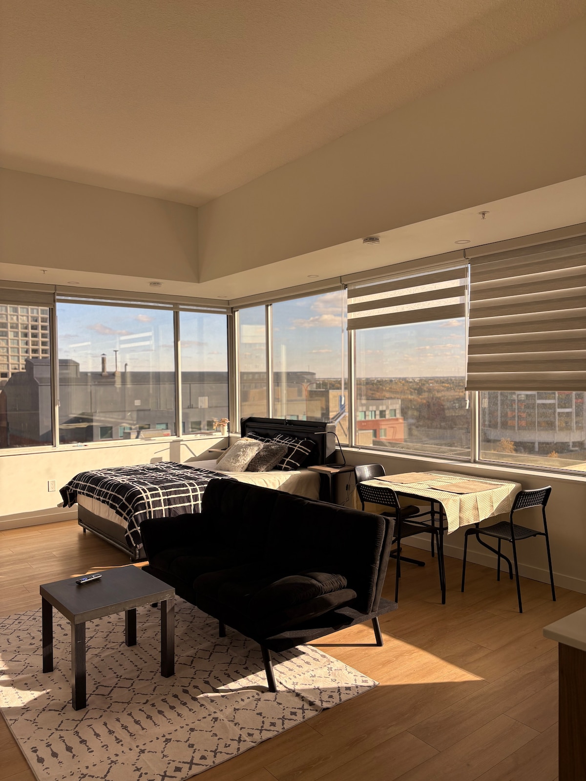 Welcome to our cozy and affordable apartment, perfect for budget-conscious travelers! If you're traveling for business or attending an event at Rogers Place, this is a great central home within minutes walk from Rogers Place, Grant MacEwan University, and the Edmonton CityCentre shopping mall and restaurants. FREE PARKING Roger Arena 3 min walk Mac Ewan University 4 min walk Train Station 3 min walk FYI: this is downtown prime location, there will be some NOISE and FOOT TRAFFIC.