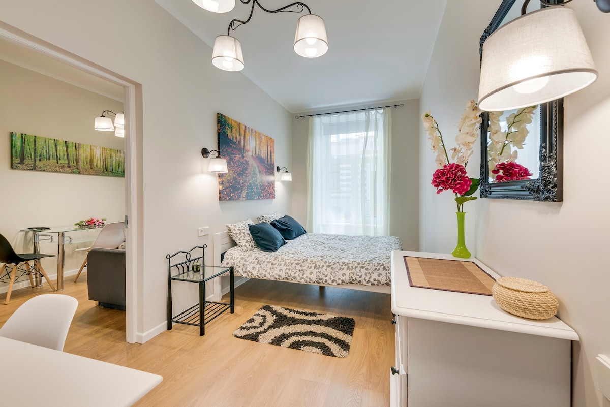 Lovely brand new studio apartment with the private park entrance located right in the city center on Caka street. Designed with elegance and modern detail in mind, this studio flat is warm, sunny and very quiet. Yet behind the doors you will find a busy street with cafes, boutiques and supermarkets. You are right in the center of Riga! The "Old Town" is less than 3km away or few stops of public transport available at your doorstep. Perfect for work or leisure, it can accommodate up to 2 guests.
