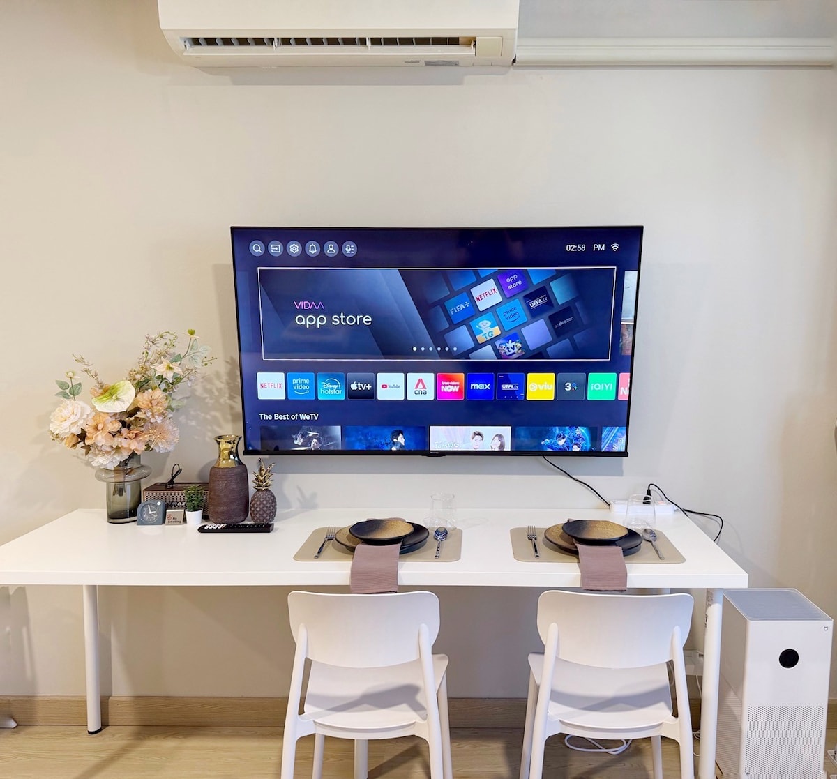Soak up the modern charm of this nice decorated room. Fully furnished with all electric appliances that enhance the comfort of your stays ! The entire place will be yours [bedroom, bathroom,kitchen & living space] Soft&comfortable King size mattress & Muji bedsheet set. Free Wifi , 60" SmartTV + free Netflix, Air purifier, washing machine with drying function , iron , microwave oven , fridge, Electric hob & cooking utensils. Bathroom with rain shower & hot water machine.
