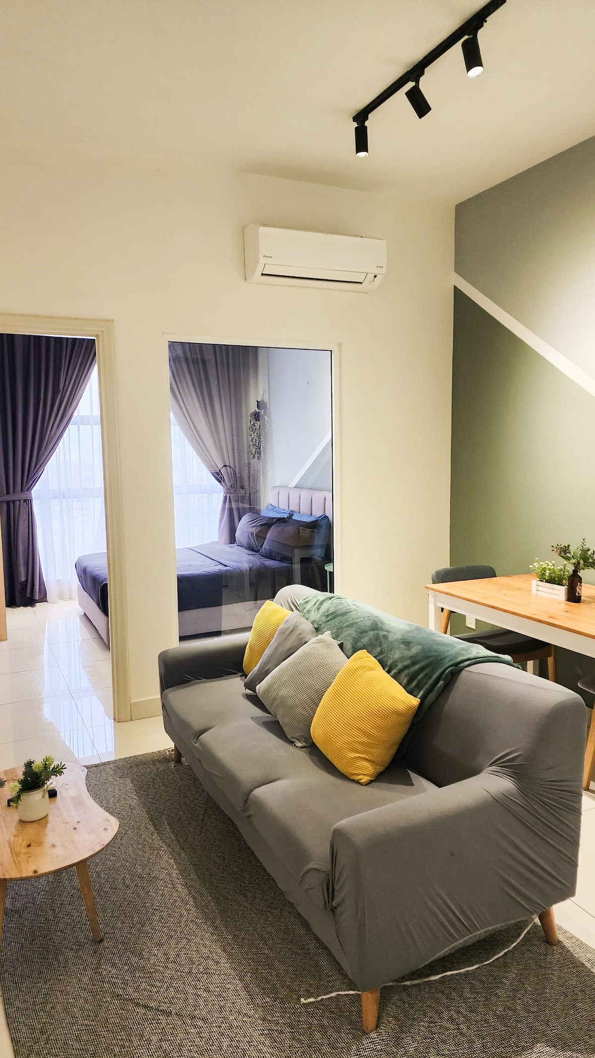 Indulge in luxury and comfort at our cozy Arte Mont Kiara unit, perfect for 4 guests. Relax in a king-sized bed or an IKEA sofa bed, and enjoy a private cinema experience with a 65" 4K UHD Smart TV and Sonos home theatre. Stream Netflix, Disney+, and more with high-speed Wi-Fi. Have fun with free PS4 games like EA FC24 and Overcooked. Light cooking is easy with a stove, microwave, and toaster. Complimentary tea and coffee provided, with snacks available for purchase from our mini bar