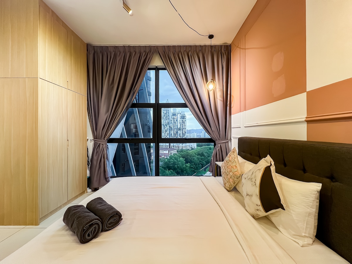 You Get What You See👀 Enjoy an Unique French Retro stylish living experience at this centrally-located place-ARTE Mont Kiara. Strategically located in the heart of Dutamas neighboring with Bangsar, Damansara and KLCC, making it an excellent place for staycation, work & family gathering. Welcome to a 944sqft High Floor Loft with Spectacular KLCC Skyline View - a premium, spacious, clean & comfortable stay with Unlimited High Speed Internet 300Mbps & 50" Android Smart TV with Netflix.