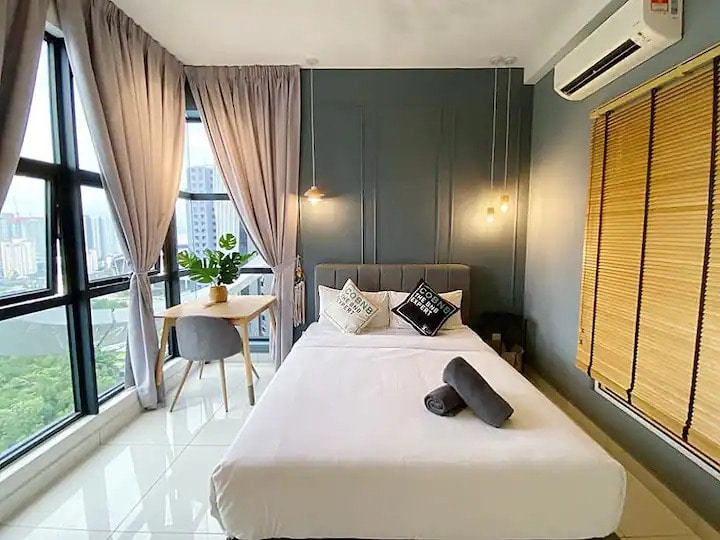 Why stay at The Palm's Junior Suite at Lucentia Residence - the views of KL - beautifully decorated with a fun spirit - centrally located - near public transportation - fast wifi - TV with Netflix, Apple TV, Prime Video - 2 gorgeous pools - gym, pool table, BBQ pits, paino - super host manager - garage parking - recommended for 2, max can sleeps 3 - LaLa Port Shopping Mall & entertainment street are attached - grocery, drug store, and many restaurants are attached - movie theater Gsc beside