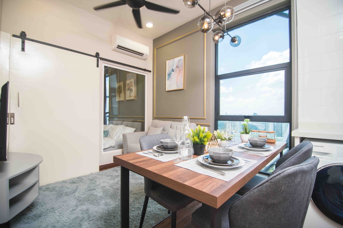Why stay at The Palm's Junior Suite at Lucentia Residence - the views of KL - beautifully decorated with a fun spirit - centrally located - near public transportation - fast wifi - TV with Netflix, Apple TV, Prime Video - 2 gorgeous pools - gym, pool table, BBQ pits, paino - super host manager - garage parking - recommended for 2, max can sleeps 3 - LaLa Port Shopping Mall & entertainment street are attached - grocery, drug store, and many restaurants are attached - movie theater Gsc beside