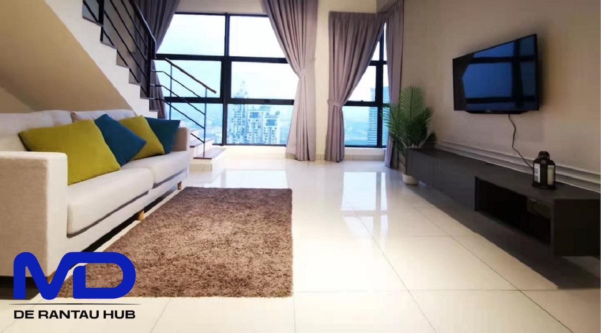 Experience breathtaking KLCC skyline views from this stylish duplex, just a 4-minute walk to Mitec Matrade. Enjoy lightning-fast 500mbps internet, a 65-inch Samsung Smart TV for your entertainment, and a SONY hi-res home theater surround sound system for immersive movie nights. Perfect for both business and leisure travelers, this urban retreat offers the perfect blend of luxury and convenience. Queen-size bed for each room, and foldable mattress will be provided for extra guests.