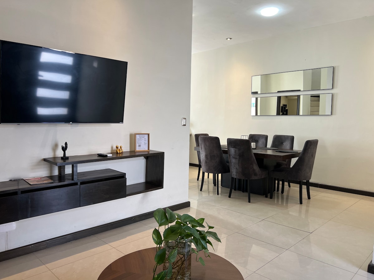 Esta hermosa residencia esta ubicada muy cerca de varios centros comerciales. Cuenta con 3 habitaciones y 5 camas! (Dos KS y 3 matrimoniales) y un sofá cama! Todas las habitaciones y sala de juegos cuentan con smart tv para mejorar tu estadía en nuestra casa! La mesa de billar se puede utilizar por mayores y en el caso que niños jueguen debe de ser supervisado por adultos para mantenerla en buen estado (No se aceptan mascotas)