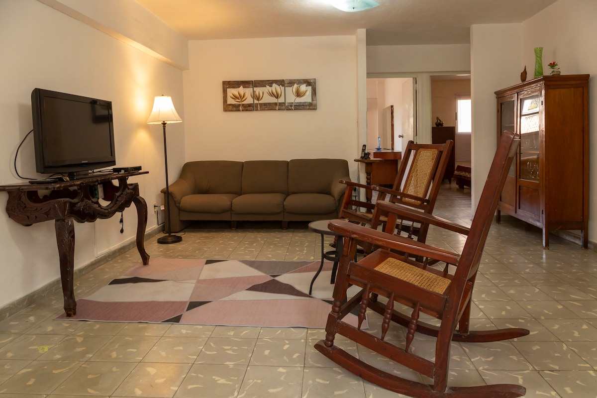 Appartement situé au 2ième étage de la maison. Accès par un escalier extérieur indépendant. Chambre + Salon + Kitchenette + Bar + Salle de bains (douche) privative + Balcon + Accès au Roof Top Les relations sexuelles payantes ou non avec des jeunes cubains ou cubaines sont formellement interdites dans la Villa Samantha. Les invités sont interdits dans la maison de jour comme de nuit. La maison est réservée aux locataires d’Airbnb. Vue exceptionnelle et un accès à la mer proche (30 mètres).