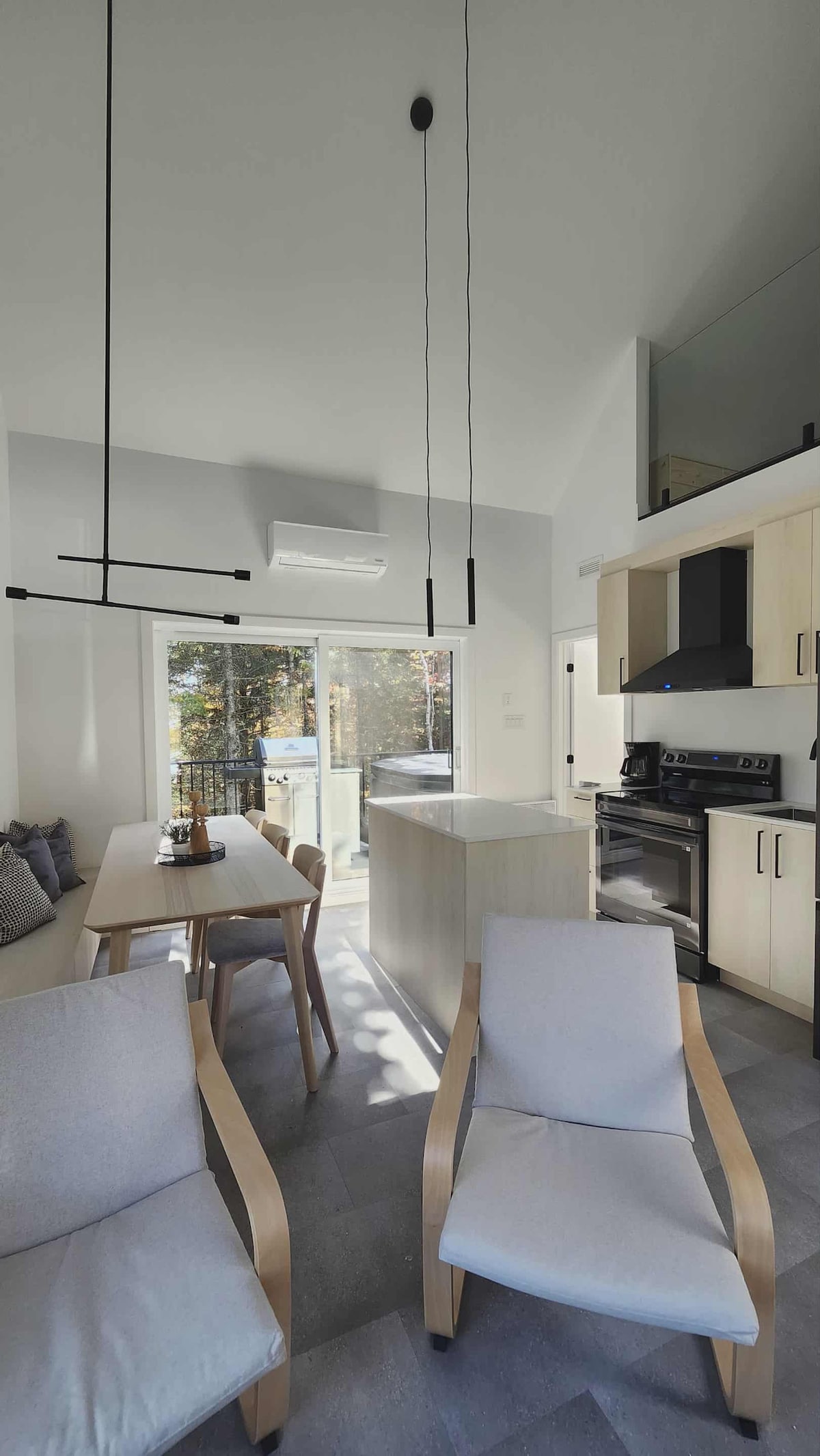 Le rifugio est l’endroit idéal pour se réfugier. Un havre de paix en pleine nature entouré de montagnes à perte de vue. Le Rifugio vous offre la liberté de faire un lien authentique avec la nature et de profiter de temps de qualité seul ou à plusieurs. Dès que vous franchissez la porte, vous êtes accueillis dans une atmosphère chaleureuse et confortable. De grandes fenêtres offrent une vue magnifique sur les montagnes environnantes et au loin nous pouvons apercevoir la pointe du Lac Mégantic.