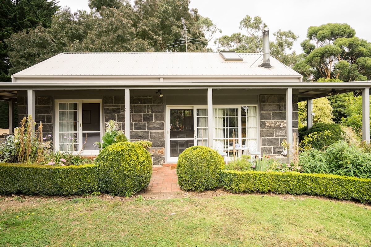 Self contained cozy, stylish , serene and peaceful . Garden with hammock and barbecue . Queen bed , spacious bathroom with very comfortable bath . Loft bedroom with rural views with single bed . Extensive library of books , magazines, cds and DVD s Wood heater and reverse cycle air conditioning . Generous breakfast hamper. , sparkling wine and chocolates included . Set on 4 hectares with lovely rambling cottage and vegetable gardens . Close to beaches , wineries ,markets , restaurants and The Eagle at Arthurs Seat . Packages available at Peninsula Hot Springs . Everything provided just bring your toothbrush . Golf courses also nearby . Wake up to the bird song .