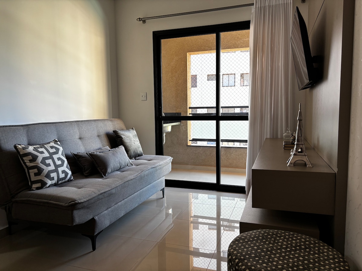 Apartamento moderno e completo, em andar alto, numa ótima localização em Ribeirão Preto (Jardim Botânico). Ambiente com ar condicionado, equipado com os utensílios necessários para a estadia, mobiliado e decorado. Sala com sofá-cama e SmartTV. Prédio bem localizado, de acesso fácil às principais avenidas da cidade, além de contar com piscina, área de lazer, academia e sala de reuniões.