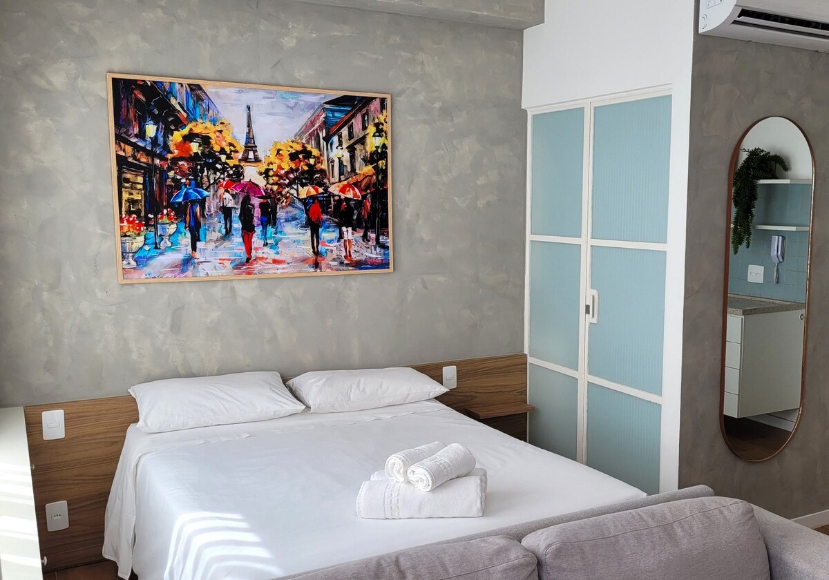 公寓配备无线网络、空调、1个车位、游泳池,靠近Iguatemi