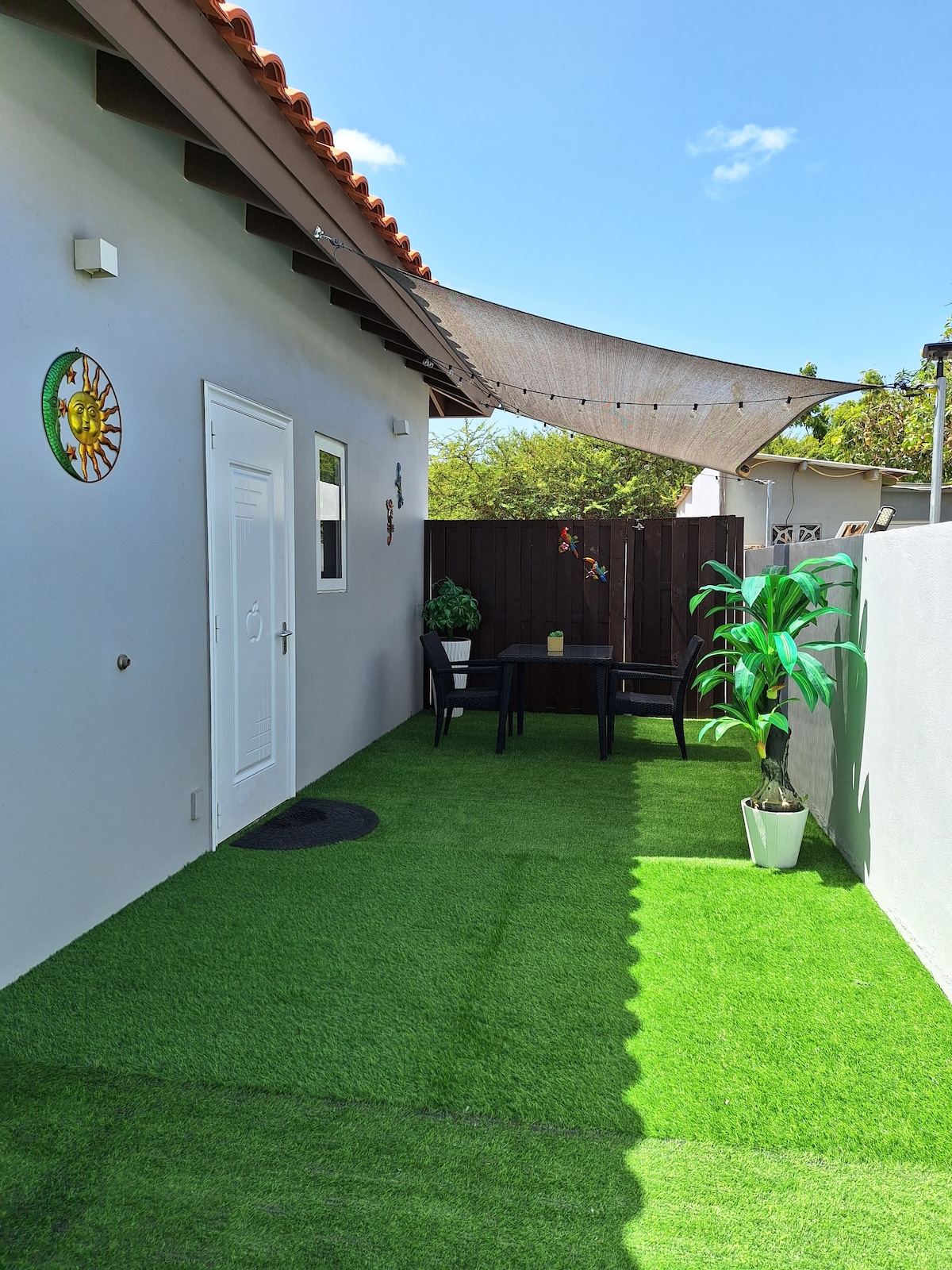 Brand new studio apto. located close to Eagle Beach (top 20th. beach in the world) within 15 minutes walking distance. Great couple retreat. Large supermarket and mall within 10 minutes walking distance. The studio has a European (larger than american) queen size bed, full closet, 2 chairs, table, tv 44 inches 4k High Definition with 200 channels plus and NetFlix, bedlinen and towels, soap, hair dryer and courtesy shampoo. Outside barbecue set also is a plus.