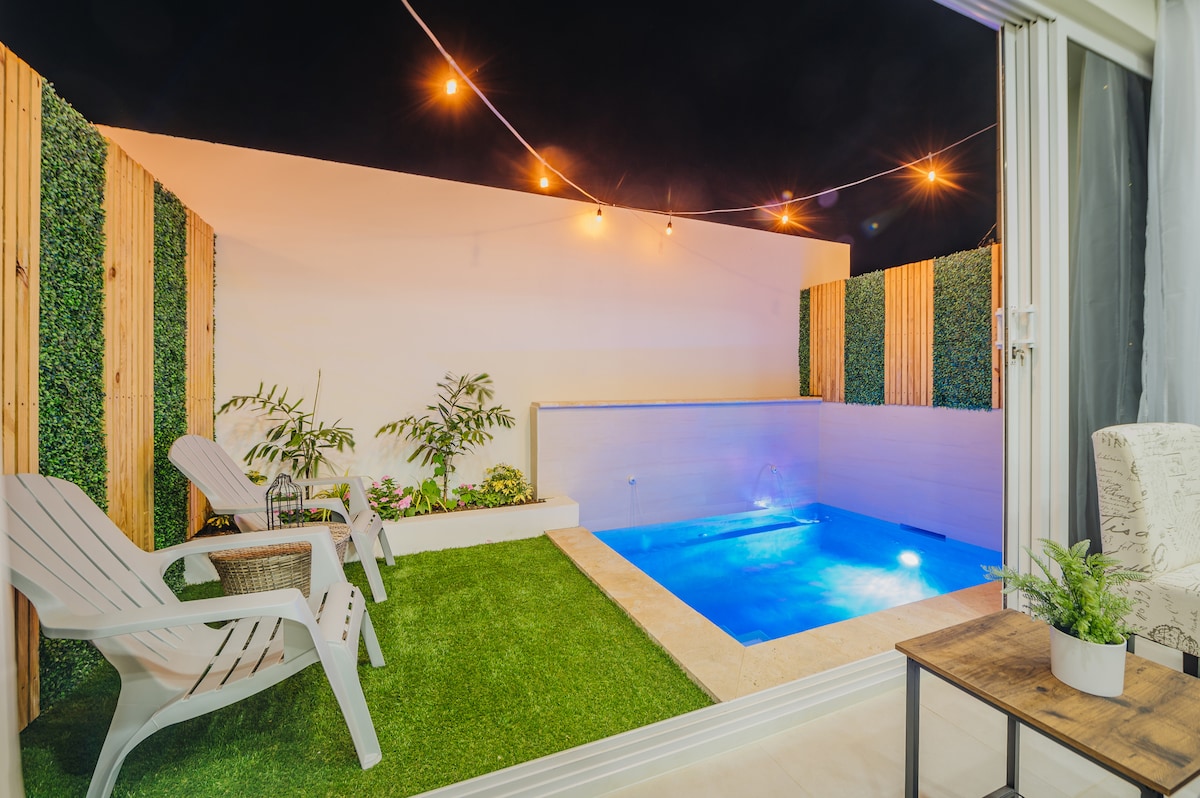 靠近棕榈滩的私人前角房,带泳池