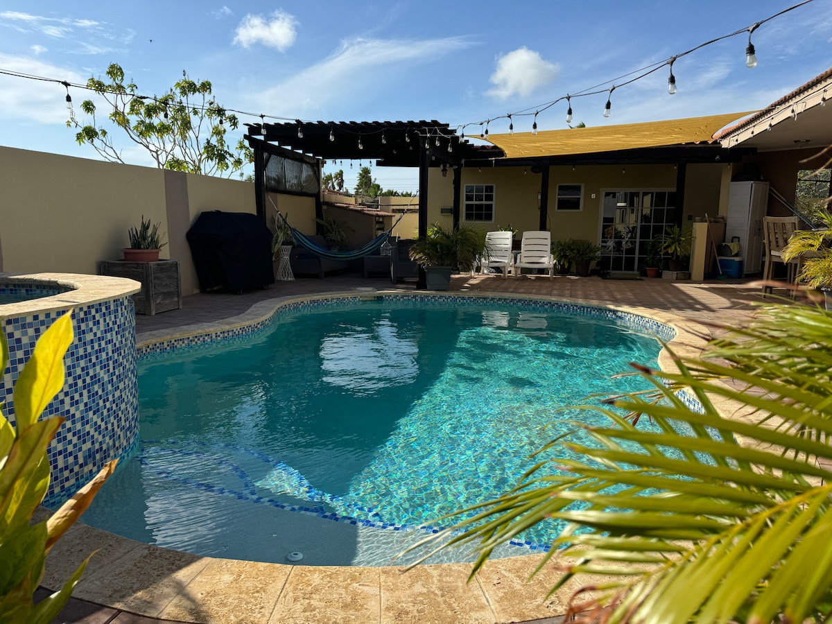 Escape to our Mediterranean villa and enjoy the white sands of Aruba the happy island, stay in a luxury apartment with the best comforts of a Caribbean home, entrance from the garden area, relax in the pool and enjoy our tropical garden in the hammock under the palms. BEST LOCATION *Palm Beach 400 meters walking *Noord supermarket 350 meters walking *Just a 4-minute drive from the restaurants, nightclubs and shopping. ~CHILDREN ARE WELCOME.