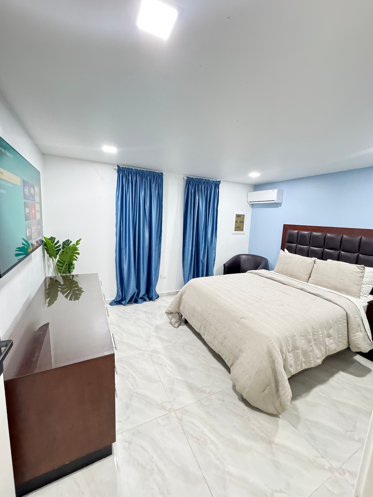 Welcome to your tropical escape! Just 3 minutes from the famous Palm Beach. This stylish modern villa offers the perfect blend of comfort and luxury. Enjoy 3 beautifully designed bedrooms and 3 full bathrooms, ideal for families or groups of up to 6 guests. Lounge by your private pool, soak up the sun in one of the many cozy seating areas, and unwind in a serene setting that feels like your own piece of paradise. ✔ 3 Bedrooms ✔ 3-mins to Palm Beach ✔ Private Pool ✔ Full Kitchens ✔ Apartment
