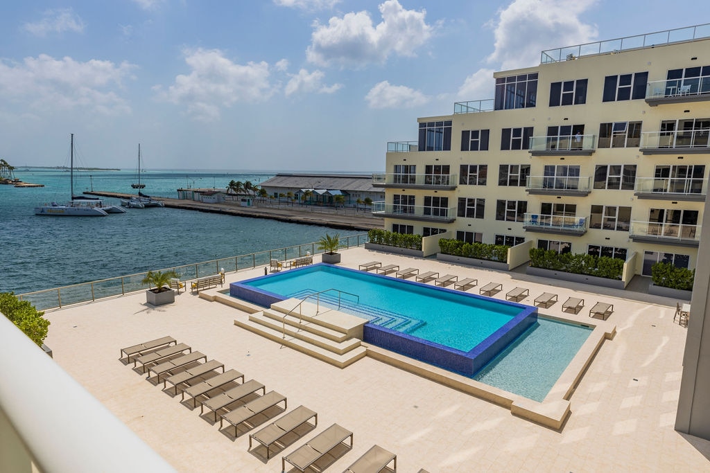 Your wonderful air-conditioned studio with prime 2nd floor infinity pool & ocean view, modern décor and an equipped "hideaway" kitchen! Just close the sliding doors and immerse yourself in the tranquility and luxury of this unit. Featuring a King size bed, a sofa bed, a bathroom with shower, a large walk-in closet, a hairdryer, and located on the 3rd floor of Harbour House, a complex in the city center. Everything you might need is offered in this studio.