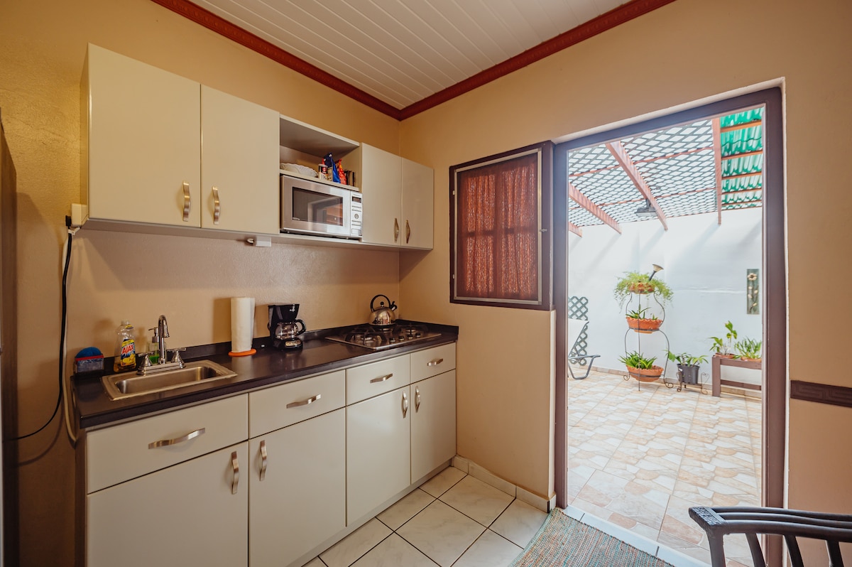 Brand new apartment. With Kitchen, fridge and stove. Nice outside PRIVATE chilling area. It's a few minutes drive to downtown, beaches and our national park. You can take a hot shower :D. WIFI fast and reliable! -Hot water in the shower -Private parking (fenced) -Hair dryer -Beach chairs that you can take to the beach -Spices are in the apartment (in case you want to cook :-) -Towels -Beach towels - -Iron and Ironing board -Fridge -AWESOME SERVICE!!!