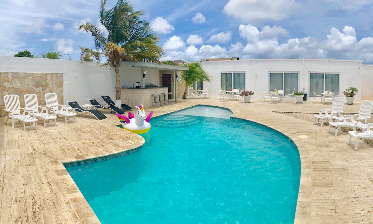 The house, is part of lovely small cozy resort centrally located on the island. Close to the white sandy beaches & walking distance to stores & restaurants. It is clean tastefully modern decorated with all amenities and available for a max of 8 guests with a resort style pool. All air conditioned bedrooms. Perfect for Families, Reunions, etc. (large group of people). Your host is available for any questions (Dutch, English, Spanish) Come feel the Caribbean vibe at our La Felicidad Resort.