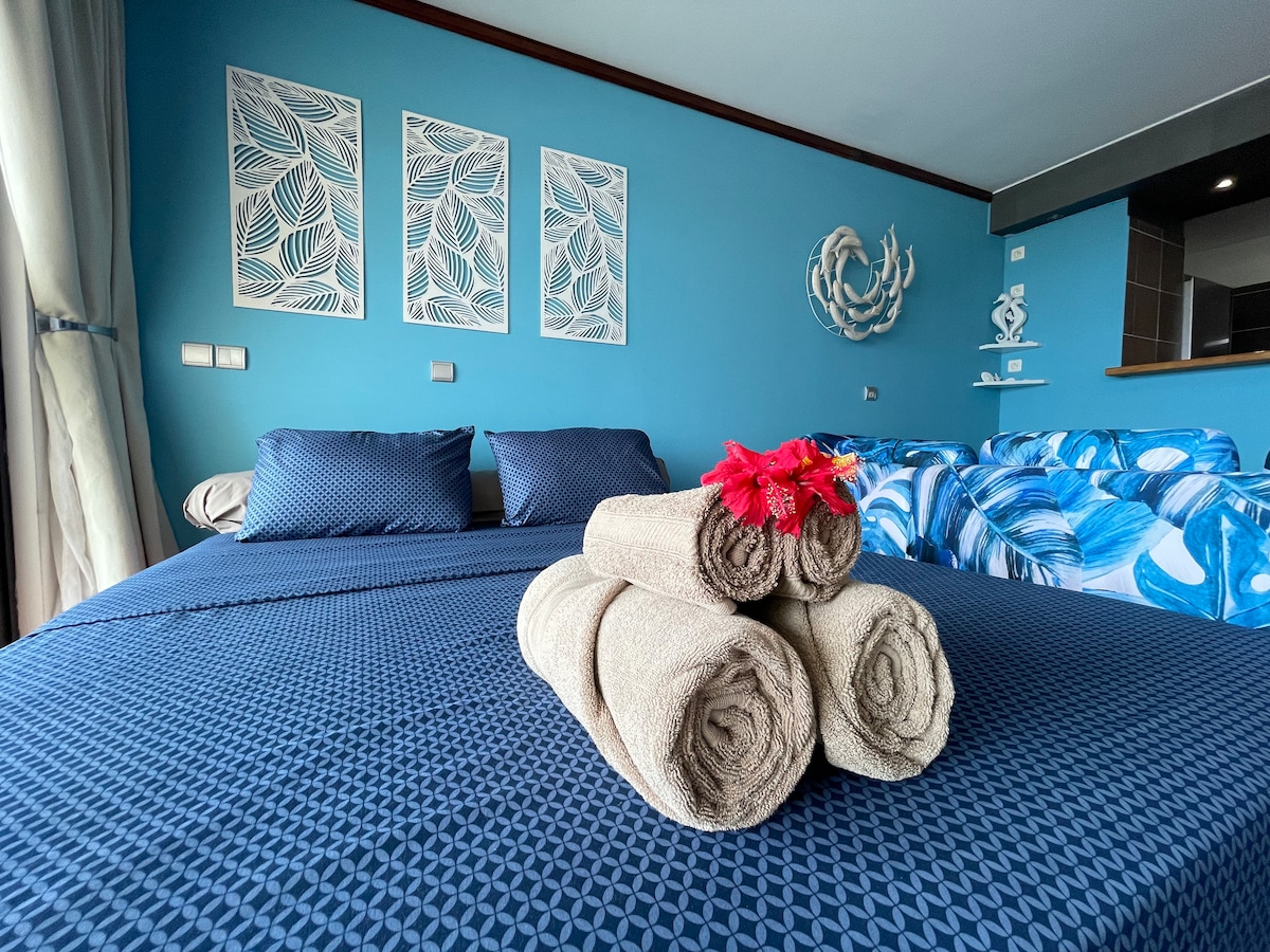 ⟩ Just 5 minutes by car from the airport and a 10-minute walk to downtown Papeete (or 5 minutes by car). In a quiet neighborhood, enjoy the cozy, modern, and Tahitian 45 m² Fare Manua with balcony: ⟶ Renovated in October 2024; ⟶ Orthopedic mattress and quality sofa bed; ⟶ Free and secure Wi-Fi at 20mbps; ⟶ Air conditioning; ⟶ Secure building with elevator; ⟶ Close to Papeete market, waterfront, and shops; ⟶ Free private parking. ⟩ Book your stay in Tahiti now!