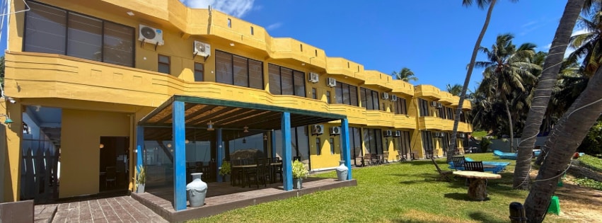 You won’t to leave this charming, one-of-a-kind place by the beach. Mambo’s hotel it’s a magical ocean view cabanas with touch of nature. Beautiful green garden with monkeys and flowers. Beach front restaurant and surf school.