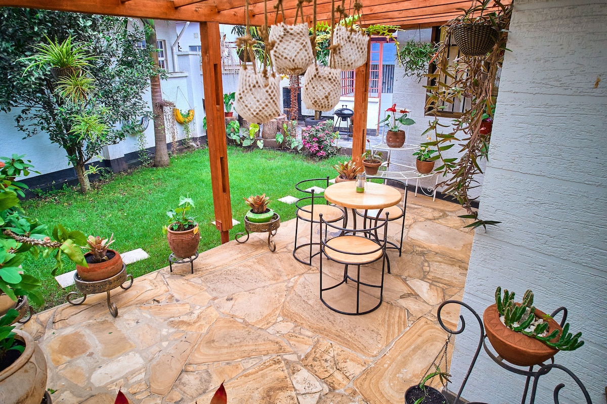 The Rosemary Home is a delightful three-bedroom house that creates a warm and inviting atmosphere. Inside, you'll find a spacious sitting room, a cozy kitchen, a veranda, and a beautifully maintained garden perfect for relaxing. Situated in the peaceful Njiro area with secure electric fencing, it’s conveniently close to shops and restaurants. The house is fully enclosed and stocked with all the essentials, whether you're staying for a short visit or a longer getaway—it truly feels just like home