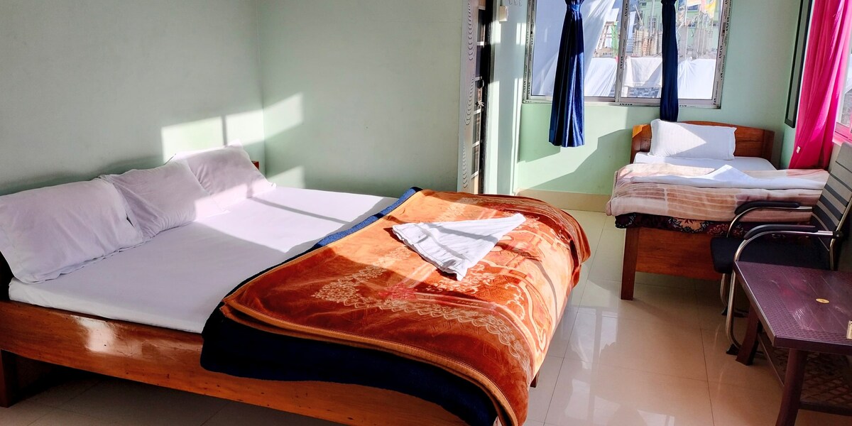 Tenzin Homestay offers a Deluxe Family Room with beautiful mountain views, ideal for up to 4 guests. This spacious and comfortable hotel room in Dirang is perfect for families seeking peaceful stays near nature. Among the best hotels in Dirang, our homestay provides clean rooms, warm hospitality, and easy access to local attractions. Enjoy a relaxing hotel stay in Dirang with scenic surroundings and personalized service at Tenzin Homestay.