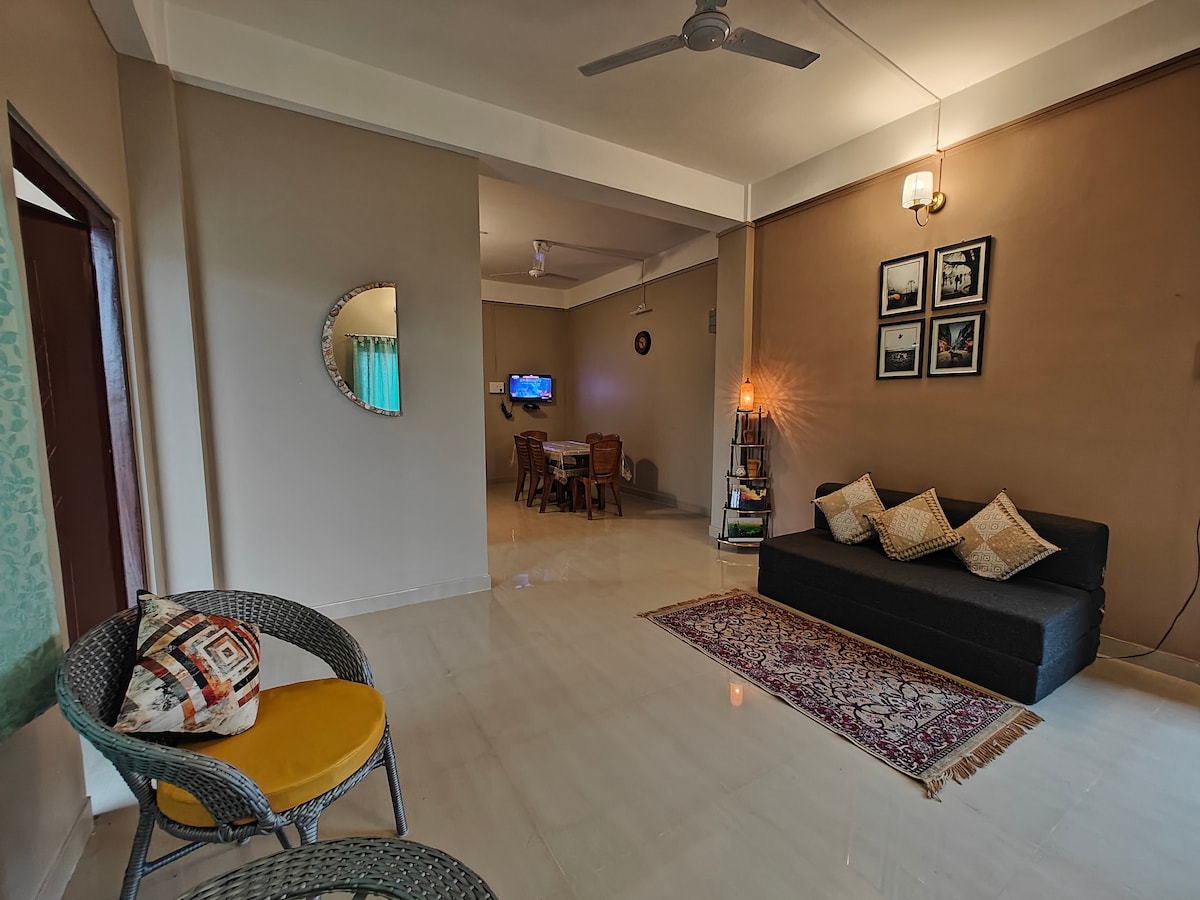 This fully furnished 2BHK apartment hosted by Sugandha & Sugam is perfect for families or groups. The apartment is equipped with Wi-Fi and a dedicated workspace. If you're a music enthusiast, you can enjoy the jam room with musical instruments, or the small library if you love reading. We have got a few indoor games to keep children entertained. Our guests can access a Smart TV, RO/UV drinking water, a fully-equipped kitchen with a refrigerator, a washing machine, and a free parking facility.