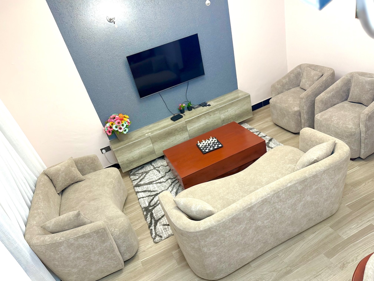 This is a 1 out of 5 (same compound - links below🌟) spacious & serene space in Njiro. Ur stylish & private 1-BDR APT on the ground floor, designed for comfort & charm. Enjoy a fully equipped kitchen, a sleek bathroom, a tranquil bedroom & a cozy living room that opens to a balcony overlooking a lush garden. Njiro Comm. Centre 600m Safari Minimart 800m Radio 5 FM 700m Njiro Legacy 1.4km Njiro Sec School 2.1km The Pillars 2.2km Megacare Polyclinic 2.2km IAA 3.9km ESAMI 4.4km Larry V Garden 4km