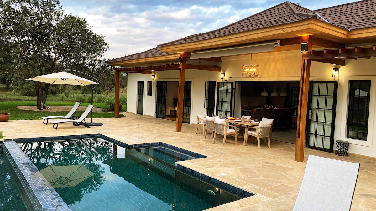 A modern architectural marvel that is situated on a wildlife golf Estate, fifty minutes form Kilimanjaro International Airport. Golfing, walks to see fona and flora, relaxing around the pool are the main activities. You will be welcome by our house manager on a bed and breakfast basis and she will help you with anything you need during your stay. You will also have the opportunity to see the two famous mountains from the Estate, Mount Kilimanjaro and Mount Meru! A paradise within a paradise..