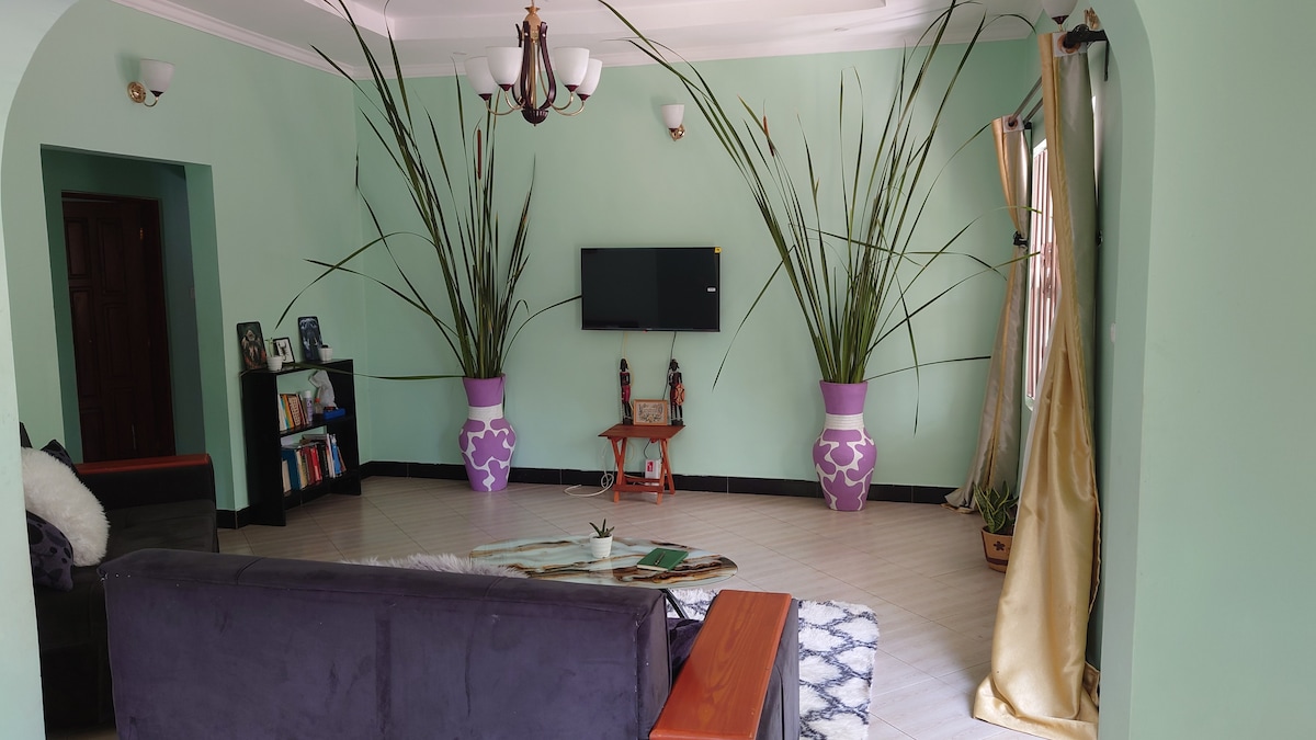 A cool comfortable house located in a quiet and peaceful neighborhood in Sakina area. It’s 10_15 minutes walk from the Nairobi-ARUSHA highway (A104) where you can catch a public transport to city center for 10mins to 15mins for only 400tsh. Arusha airport is 10 to 15mins away. Several local restaurants and bars are available within a walking distance from the house (15minutes to 20mins.)