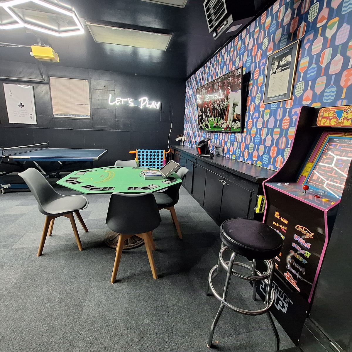 ColorPop BNB features 2600 sqft of cozy modern space, 6bd/3ba, and a bright kitchen stocked with essentials! Relax in the covered insta-worthy patio under string lights after a day out exploring. Cozy up and enjoy your favorite flicks on the 100" 4K movie theater screen. Challenge your besties to play pool in the converted garage game room — winner gets first dibs choosing their bed! Pro tip: favorites are in the kids' room hideaway (large Harry Potter closet) but sleeps two adults up to 5'10"!