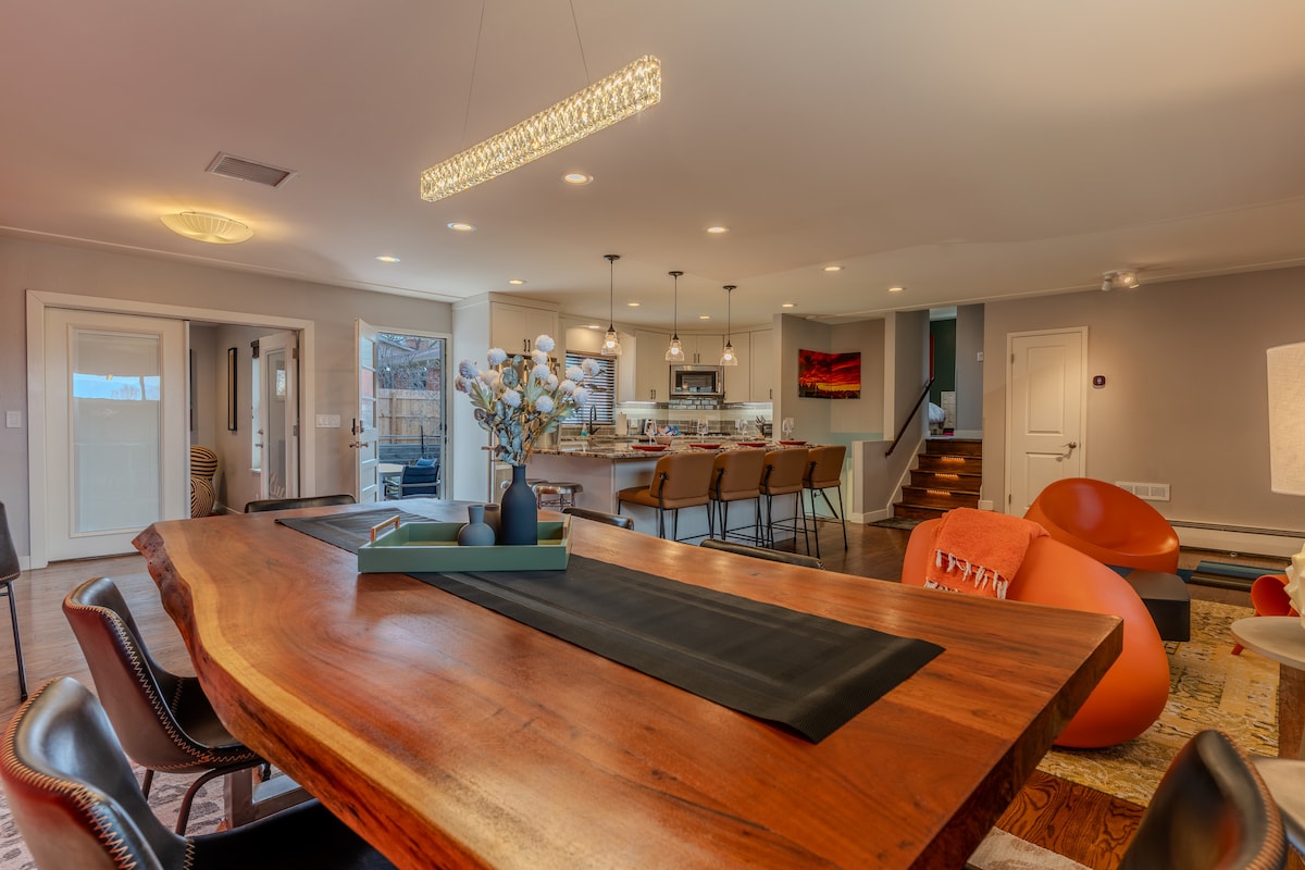 Welcome to our luxurious mid-century modern ranch home adjacent to Lake Rhoda in Wheat Ridge, Colorado! With 4 bedrooms and 2 bathrooms, our home can comfortably sleep 12 guests among its 9 beds. Nestled in Wheat Ridge, a western suburb of Denver, this private home is located on .33 acres on a corner lot. Our home is located just 5 miles away from the heart of Denver and attractions like Coors Field, the Denver Zoo, and Red Rocks. Keep reading for our favorite Denver restaurants & attractions!