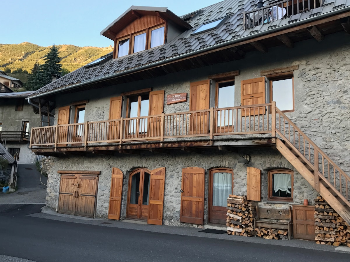 Un petit appartement douillet dans une maison de village. Calme dans la campagne,tout en étant proche de Briançon vous pourrez profiter du sauna après votre journée de ski Nous consulter pour les tarifs de 7 jours ou plus. L'escalier menant aux chambres est raide mais bien équipé de mains courantes toutefois il faut en tenir compte pour les personnes en difficulté de mobilité. L'accès est totalement indépendant. Le petit déjeuner est offert. Nous partagerons avec plaisir nos coups de cœur .